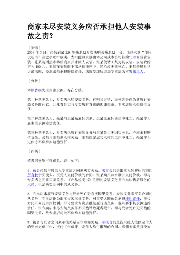 商家未盡安裝義務(wù)應(yīng)否承擔(dān)他人安裝事故之責(zé)?