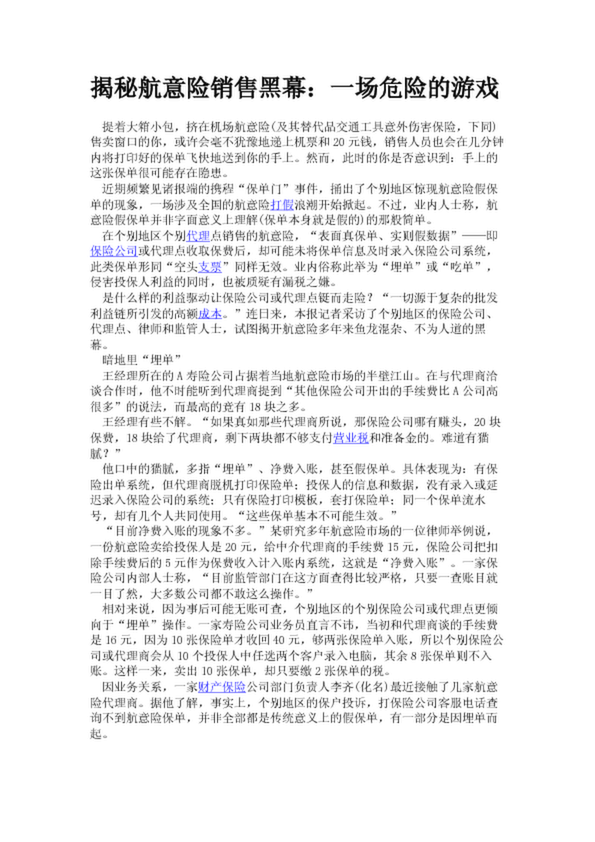 揭秘航意險(xiǎn)銷(xiāo)售黑幕:一場(chǎng)危險(xiǎn)的游戲