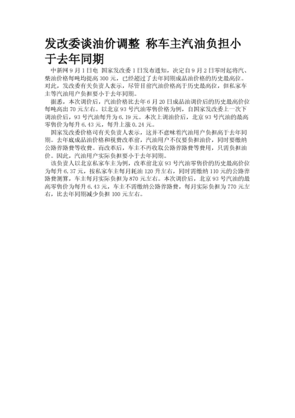 發(fā)改委談?dòng)蛢r(jià)調(diào)整 稱車主汽油負(fù)擔(dān)小于去年同期