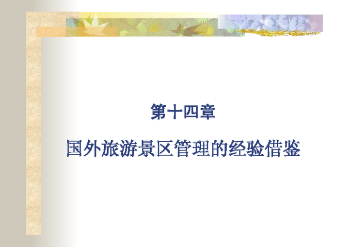 國外旅游景區(qū)管理的經(jīng)驗(yàn)借鑒,與我國風(fēng)景名勝區(qū)管理做了比較,認(rèn)為我國應(yīng)在借鑒國家公園優(yōu)秀經(jīng)驗(yàn)的同時,進(jìn)一步完善管理定位、立法和政策指令、景區(qū)與旅游開發(fā)及社區(qū)參與旅游等方面的...