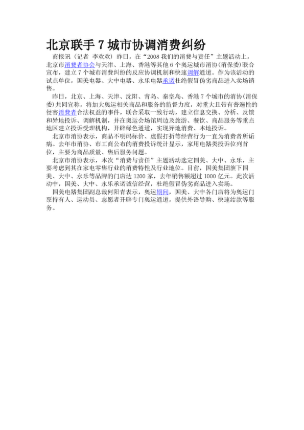 北京聯(lián)手7城市協(xié)調(diào)消費(fèi)糾紛