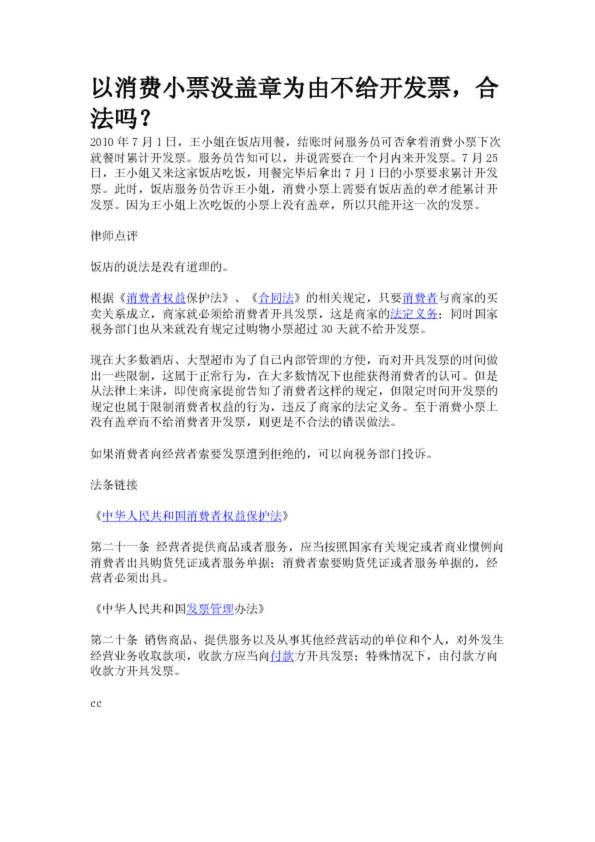 以消費(fèi)小票沒(méi)蓋章為由不給開(kāi)發(fā)票,合法嗎?
