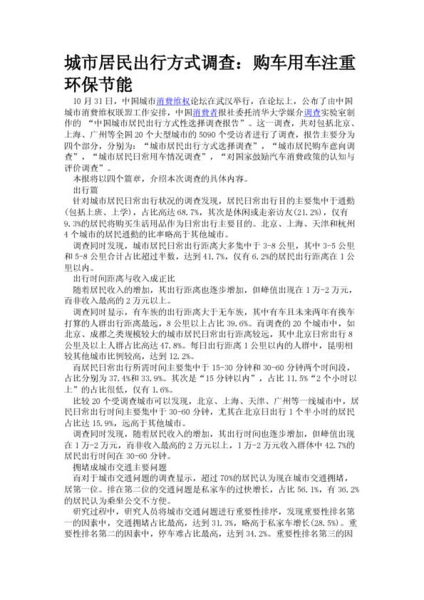 城市居民出行方式調(diào)查:購車用車注重環(huán)保節(jié)能